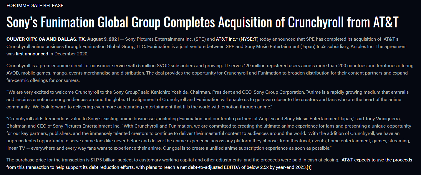 Wario64 on Twitter: "Sony's Funimation Global Group Completes .