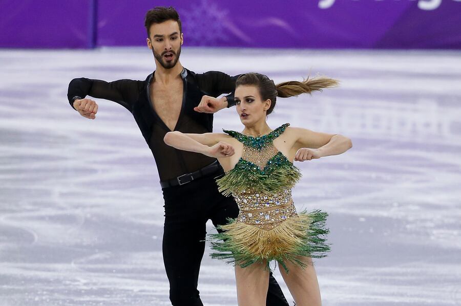 Winter Olympics: French ice dancer suffers wardrobe malfunction.